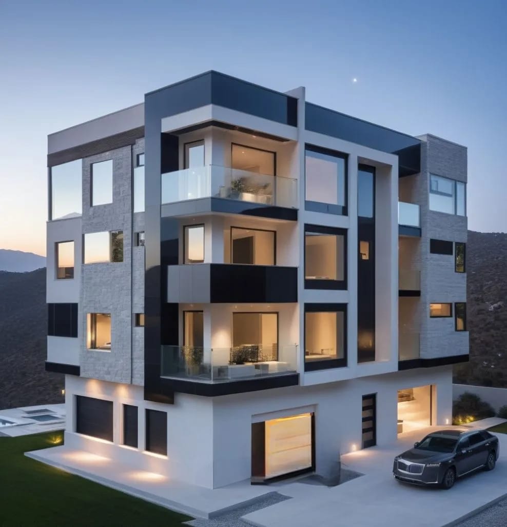 Edificio de 5 niveles: sótano de parqueaderos, 4 pisos de apartamentos y un penthouse de lujo.