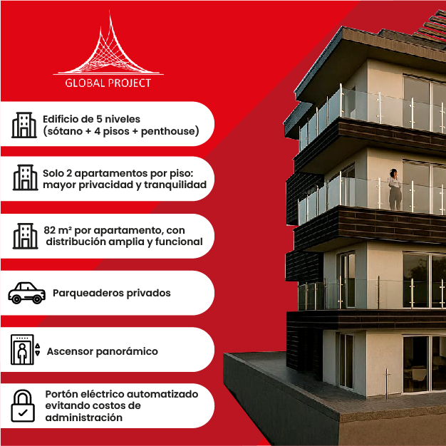 Área total por apartamento: 82 m², espacios generosos y funcionales.